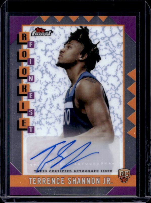 The Terrence Shannon Jr. 2024 Topps Finest #RFA-TSH Rookie Finest Autographs card is 1 of 117 Terrence Shannon Jr.'s card variations in the 2024 Topps Finest set being tracked by Sports Card Investor, including Arrivals, Arrivals - Geometric Refractor, Arrivals - Refractor, Arrivals - X-Fractor, and Base Rare.