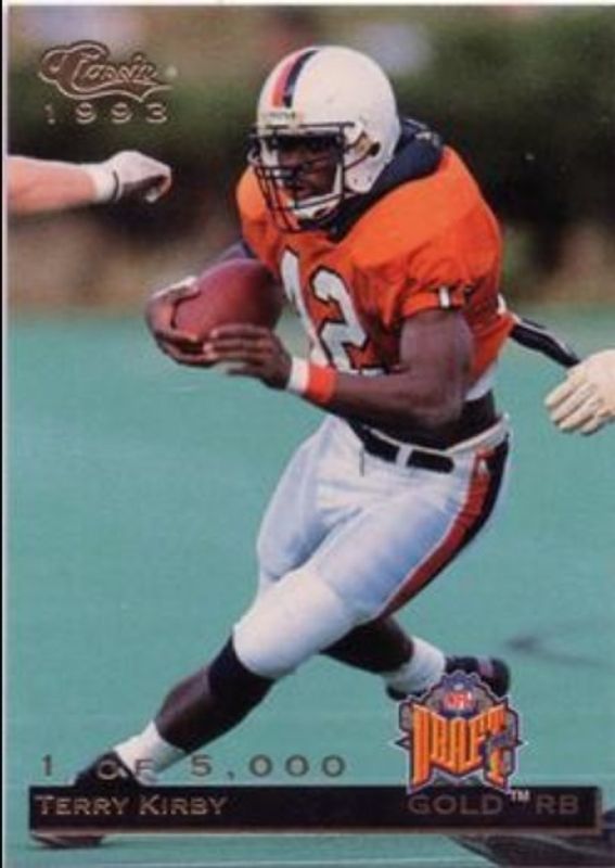 The Terry Kirby 1993 Classic #27 Gold Rookie card is 1 of 3 Terry Kirby's card variations in the 1993 Classic set being tracked by Sports Card Investor, including Base, and Autographs.
