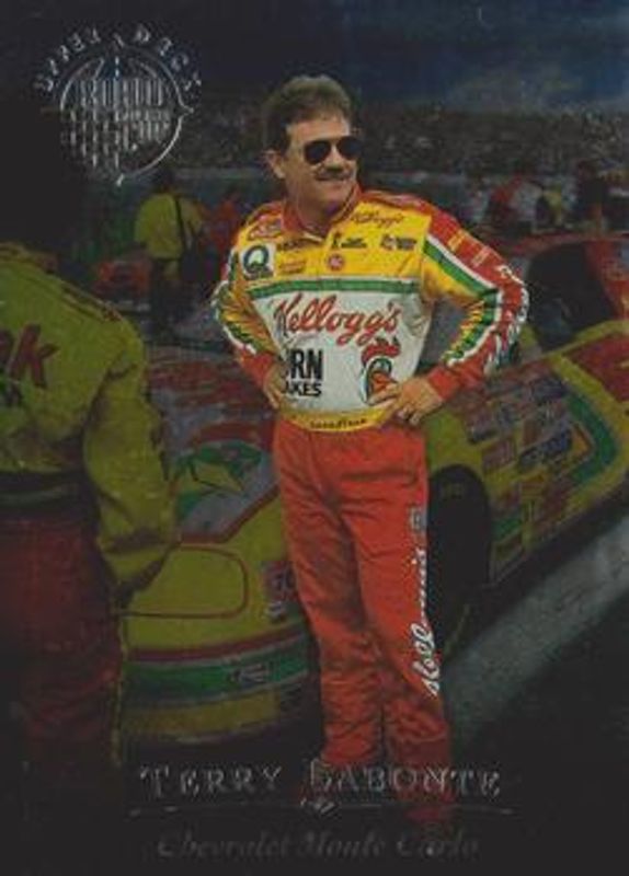 The Terry Labonte 1996 Upper Deck Road to the Cup #RC5a Base card is 1 of 14 Terry Labonte's card variations in the 1996 Upper Deck Road to the Cup set being tracked by Sports Card Investor, including #RC54a Base, #RC54b Base, #RC5b Base, #H5 Autographs, and #GF5 Game Face.