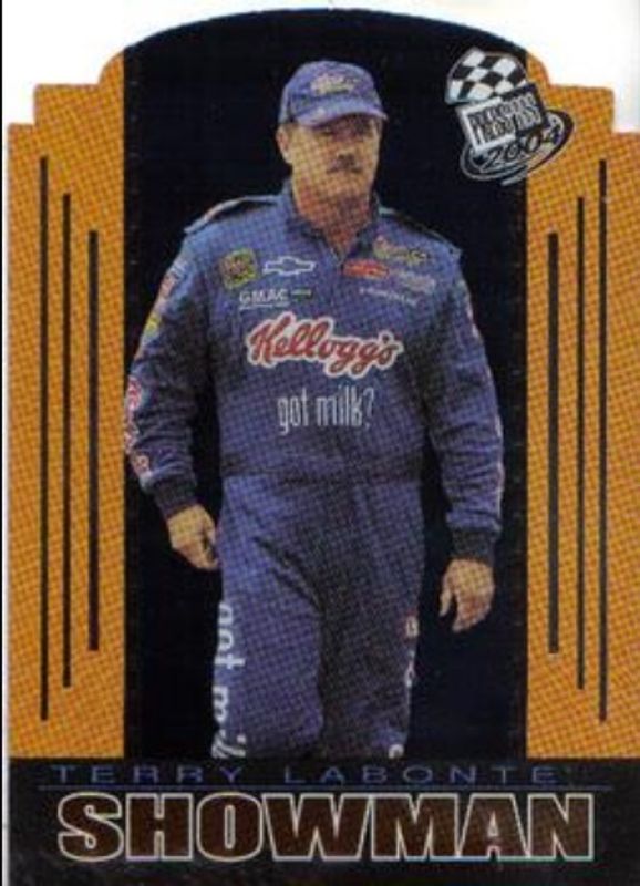 The Terry Labonte 2004 Press Pass #S-9A Showman card is 1 of 16 Terry Labonte's card variations in the 2004 Press Pass set being tracked by Sports Card Investor, including Base, Beckett Samples, Platinum, Platinum Variations, and eBay Previews /5.
