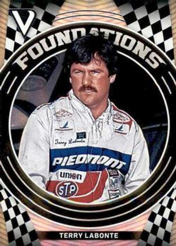 The Terry Labonte 2018 Victory Lane NASCAR #F9 Foundations card is 1 of 38 Terry Labonte's card variations in the 2018 Victory Lane NASCAR set being tracked by Sports Card Investor, including Base, Silver, Gold /99, Red /49, and Blue /25.