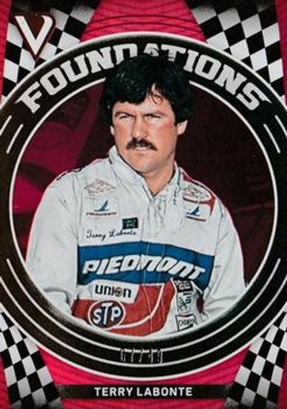 The Terry Labonte 2018 Victory Lane NASCAR #F9 Foundations Red /49 card is 1 of 38 Terry Labonte's card variations in the 2018 Victory Lane NASCAR set being tracked by Sports Card Investor, including Base, Silver, Gold /99, Red /49, and Blue /25.