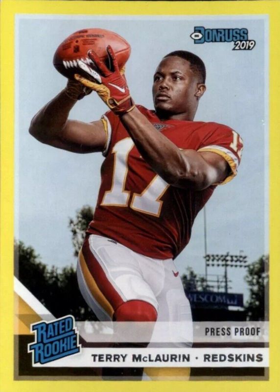 The Terry McLaurin 2019 Donruss #329 Press Proof Yellow Rookie card in Raw condition has moved up $2.99 (+199%) in the last 30 days and was last sold for $4.49 .