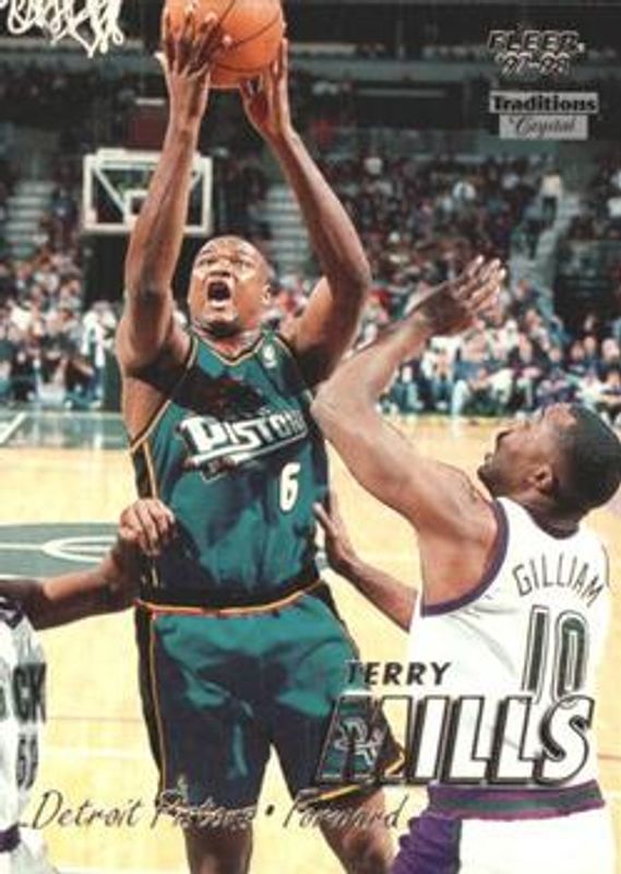 The Terry Mills 1997 Fleer #110 Crystal card is 1 of 6 Terry Mills' card variations in the 1997 Fleer set being tracked by Sports Card Investor, including #110 Base, #236 Base, #236 Crystal, #110 Tiffany, and #236 Tiffany.