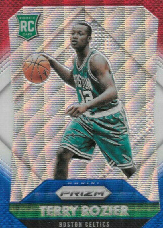 The Terry Rozier 2015 Prizm #338 Red White Blue Rookie card in Raw condition has not changed in price in the last 30 days and was last sold for $0.99 .