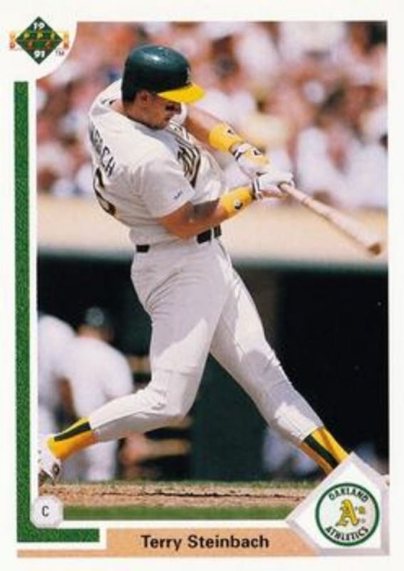 The Terry Steinbach 1991 Upper Deck #153 Base card is 1 of 3 Terry Steinbach's card variations in the 1991 Upper Deck set being tracked by Sports Card Investor, including #153c Base, and #153d Base.
