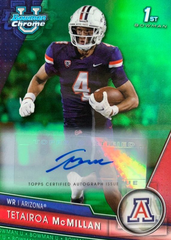 TETAIROA MCMILLAN 2023 BOWMAN CHROME UNIVERSITY #68 1ST GREEN REFRACTOR AUTO /99