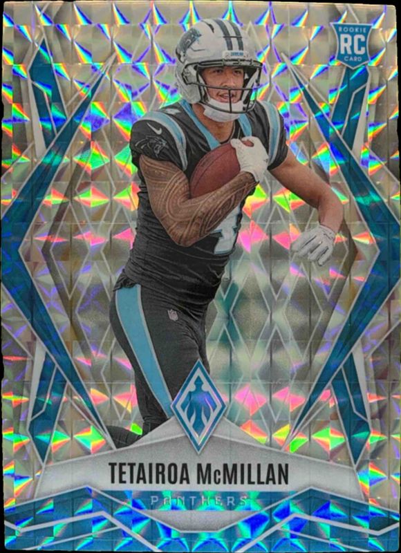 The Tetairoa McMillan 2025 Phoenix #155 Silver Pyramids Rookie card is 1 of 231 Tetairoa McMillan's card variations in the 2025 Phoenix set being tracked by Sports Card Investor, including Base, Silver, Silver Hyper, Silver Lava, and Silver Lazer.