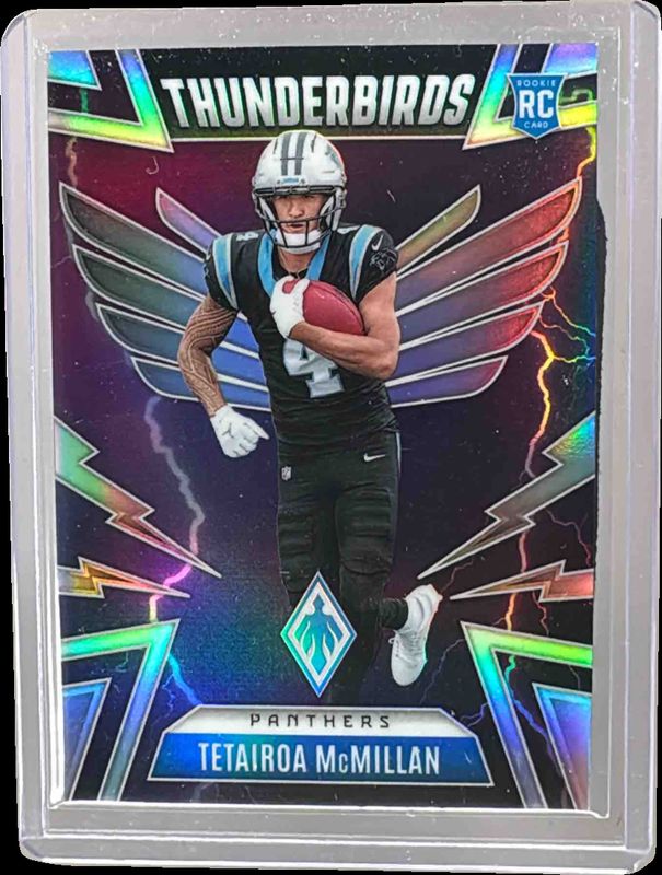The Tetairoa McMillan 2025 Phoenix #7 Thunderbirds Rookie card is 1 of 231 Tetairoa McMillan's card variations in the 2025 Phoenix set being tracked by Sports Card Investor, including Base, Silver, Silver Hyper, Silver Lava, and Silver Lazer.