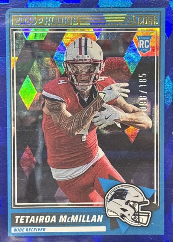 2025 Score Tetairoa McMillan RC Blue Cubic /185 #17 SSP Panthers Rookie WR