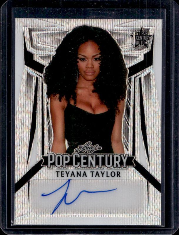The Teyana Taylor 2023 Leaf Metal Pop Century #BA-TT1 Autographs Wave Silver /20 card is 1 of 189 Teyana Taylor's card variations in the 2023 Leaf Metal Pop Century set being tracked by Sports Card Investor, including Autographs Prismatic Silver /30, Knockouts Autographs Prismatic Silver /30, Pro Set Music Autographs Prismatic Silver /30, Pro Set Raps Autographs Prismatic Silver /30, and Autographs Crystal Silver /25.