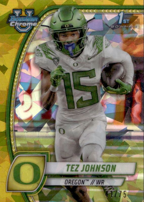 Tez Johnson 2024 Bowman Chrome University Sapphire Yellow U Oregon #171 1st /75