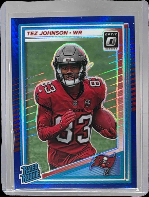 2025 Panini Donruss Optic - Rated Rookie Tez Johnson #231 Blue Hyper Prizm (RC)