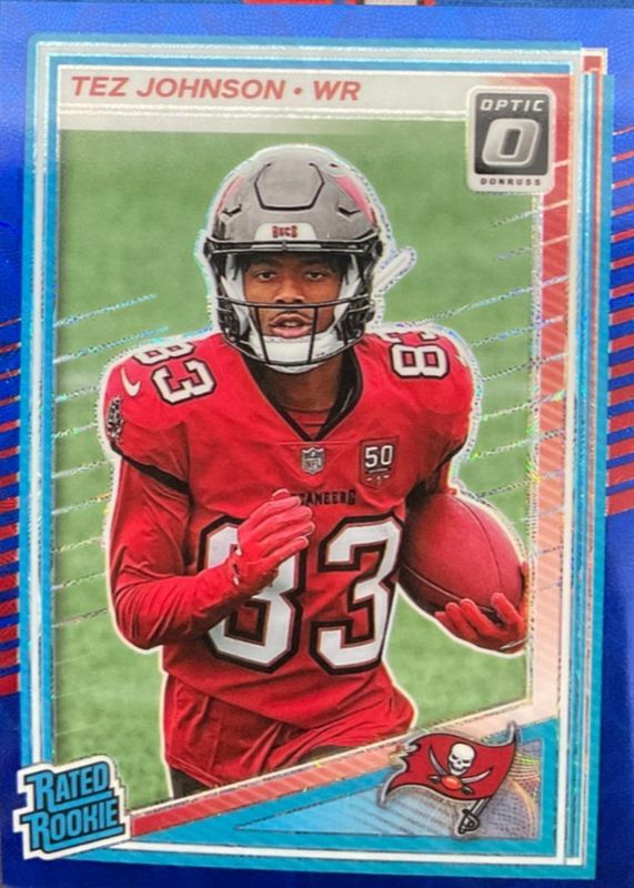 2025 Panini Donruss Optic Tez Johnson Blue Scope Prizm Rated Rookie #231 Tampa