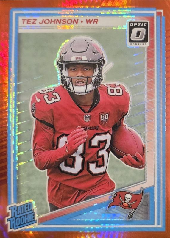 The Tez Johnson 2025 Optic #231 Red Hyper Rookie card in Raw condition has moved down -$0.68 (-30.2%) in the last 30 days and was last sold for $1.57 .