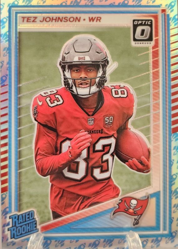 The Tez Johnson 2025 Optic #231 Rocket /(SSP) Rookie card in Raw condition has not changed in price in the last 30 days and was last sold for $8.50 .