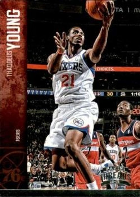 The Thaddeus Young 2012 Threads #115 Silver Century Proof /99 card is 1 of 7 Thaddeus Young's card variations in the 2012 Threads set being tracked by Sports Card Investor, including Base, Red Century Proof, Gold Century Proof /25, Platinum Century Proof /10, and Authentic Threads.