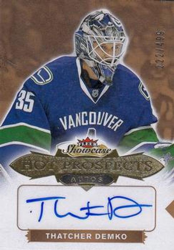 Thatcher Demko's Hockey cards are available in at least 80 sets. Thatcher Demko's biggest 7-day price movers are 2016 Fleer Showcase #196 Base /399, 2020 O-Pee-Chee #111 Red Blank Back /1, and 2020 O-Pee-Chee #111 Base.