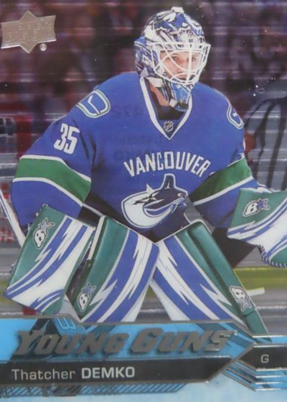 This card is 1 of 8 Thatcher Demko's card variations in the 2016 Upper Deck set being tracked by Sports Card Investor, including Young Guns Base, Young Guns - Gold Rainbow Foil, Young Guns - Jumbo, Young Guns - Silver Foil, and Young Guns - UD Exclusives /100.