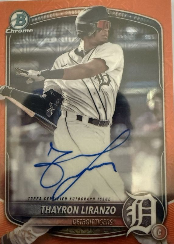 Thayron Liranzo 2025 Bowman Chrome Mega Orange Mojo AUTO /25 Detroit Tigers