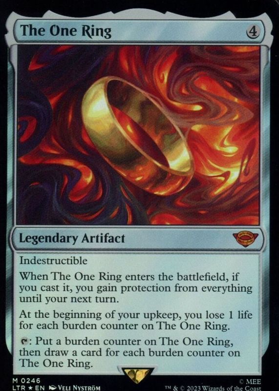 The The One Ring 2023 The Lord of the Rings: Tales of Middle-Earth #246 Foil card in Raw TCG (Lightly Played) condition has not changed in price in the last 30 days and was last sold for $84.99 .