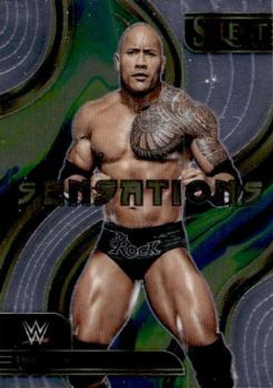 The The Rock 2023 Select WWE #6 Sensations card is 1 of 87 The Rock's card variations in the 2023 Select WWE set being tracked by Sports Card Investor, including #122 Base, #31 Base, #274 Base, #274 Orange Flash, and #31 Orange Flash.