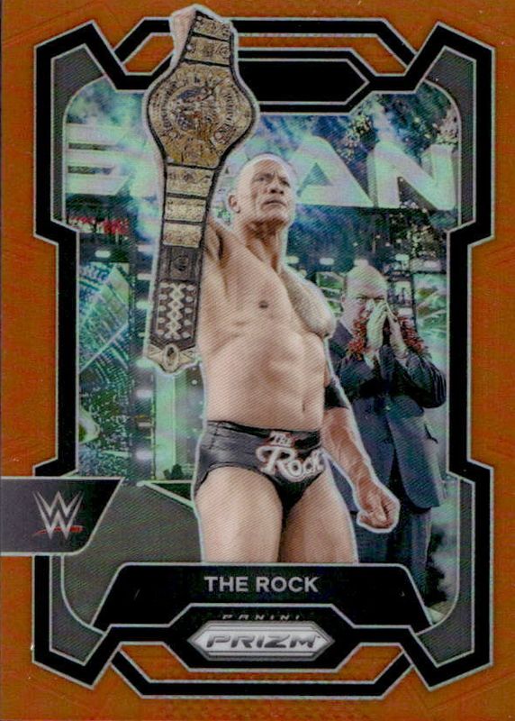 The The Rock 2024 Prizm WWE #193 Orange /99 card in Raw condition has not changed in price in the last 30 days and was last sold for $7.50 .