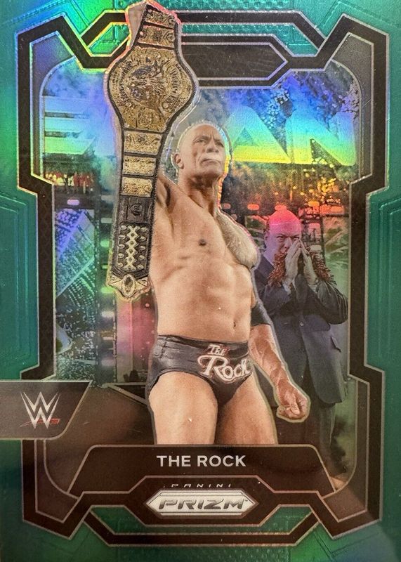 The The Rock 2024 Prizm WWE #193 Teal /49 card in Raw condition has not changed in price in the last 30 days and was last sold for $19.99 .