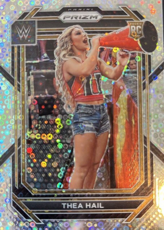 The Thea Hail 2023 Prizm WWE #122 Under Card Rookie card in Raw condition has not changed in price in the last 30 days and was last sold for $2.79 .