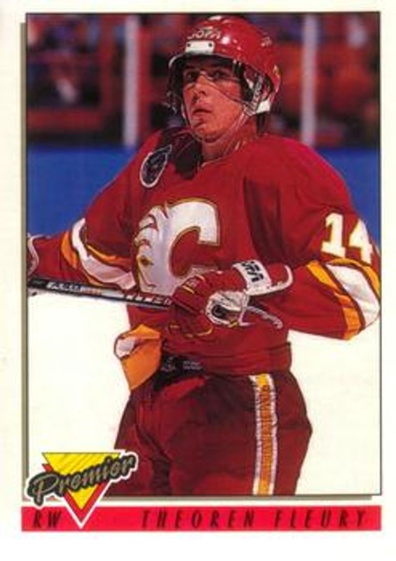 The Theo Fleury 1993 O-Pee-Chee Premier #100 Base card is 1 of 4 Theo Fleury's card variations in the 1993 O-Pee-Chee Premier set being tracked by Sports Card Investor, including Gold, Pre Production Samples, and Black Gold.