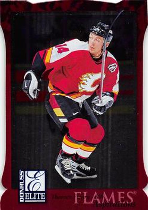 The Theo Fleury 1997 Donruss Elite #74 Aspirations card is 1 of 4 Theo Fleury's card variations in the 1997 Donruss Elite set being tracked by Sports Card Investor, including Base, Status Promos, and Status /100.