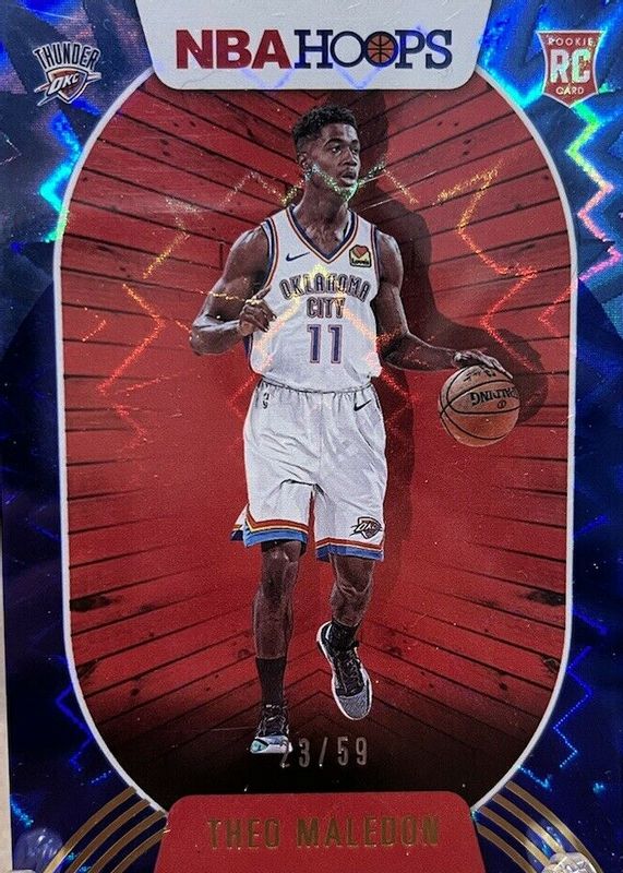 The Theo Maledon 2020 Hoops #230 Blue Explosion /59 Rookie card in Raw condition has not changed in price in the last 30 days and was last sold for $0.99 .