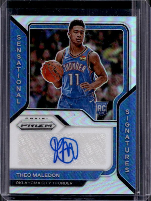 The Theo Maledon 2020 Prizm #SS-TML Sensational Signatures - Silver Rookie card is 1 of 70 Theo Maledon's card variations in the 2020 Prizm set being tracked by Sports Card Investor, including Base, Choice Blue Yellow Green, Fast Break, Green, and Green Ice.
