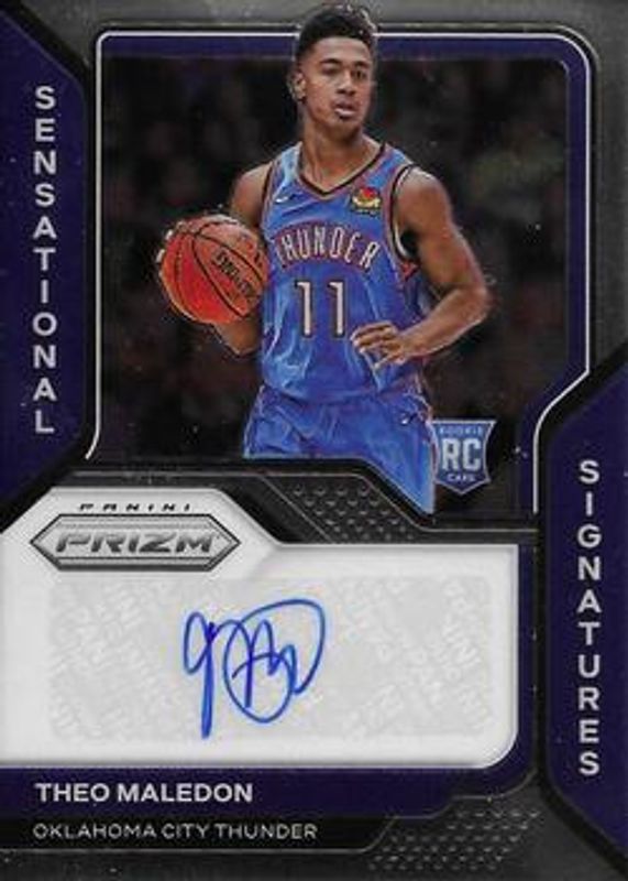 The Theo Maledon 2020 Prizm #SS-TML Sensational Signatures Rookie card is 1 of 70 Theo Maledon's card variations in the 2020 Prizm set being tracked by Sports Card Investor, including Base, Choice Blue Yellow Green, Fast Break, Green, and Green Ice.