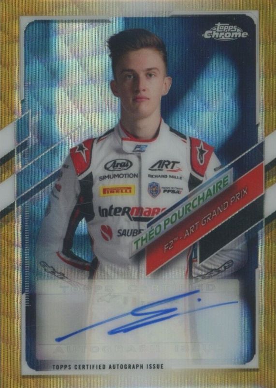 Best Prices Available For Sale of Theo Pourchaire 2021 Topps Chrome Formula 1 #CA-TP Autographs - Gold Wave Refractor /50