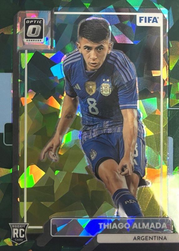 The Thiago Almada 2022 Donruss #7 Optic - Green Ice Rookie card in Raw condition has not changed in price in the last 30 days and was last sold for $1.25 .