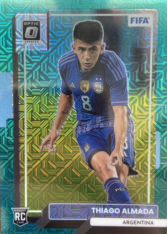 The Thiago Almada 2022 Donruss #7 Optic - Teal Mojo /49 Rookie card in Raw condition has not changed in price in the last 30 days and was last sold for $28.99 .