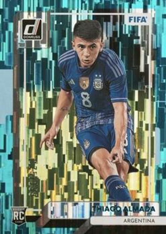 The Thiago Almada 2022 Donruss #7 Teal /199 Rookie card is 1 of 25 Thiago Almada's card variations in the 2022 Donruss set being tracked by Sports Card Investor, including Base, Green, Optic, Optic - Green Ice, and Optic - Holo.