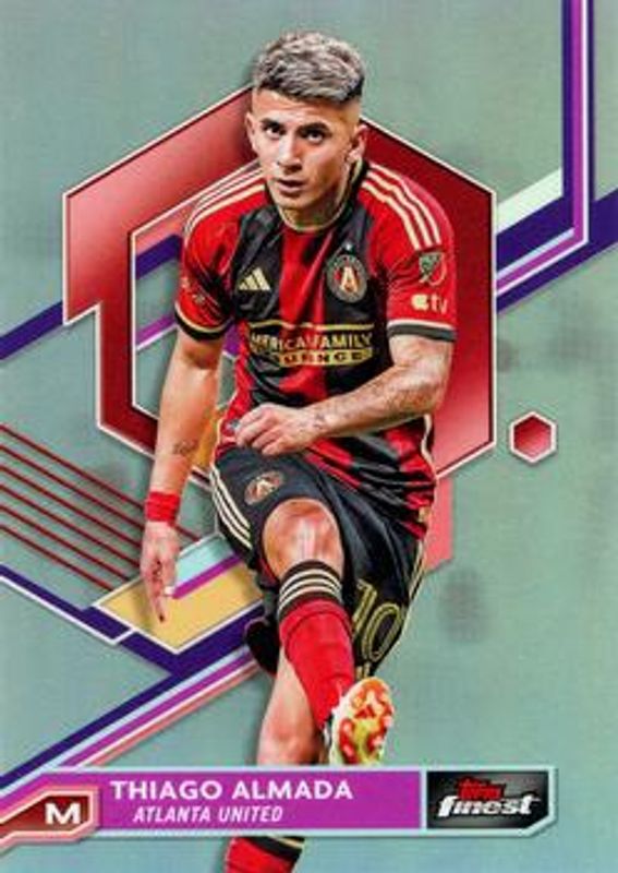 The Thiago Almada 2023 Topps Finest MLS #23 Refractor card is 1 of 40 Thiago Almada's card variations in the 2023 Topps Finest MLS set being tracked by Sports Card Investor, including Base, Purple Refractor /250, Speckle Refractor /175, Blue Refractor /150, and Pink Prism Refractor /125.