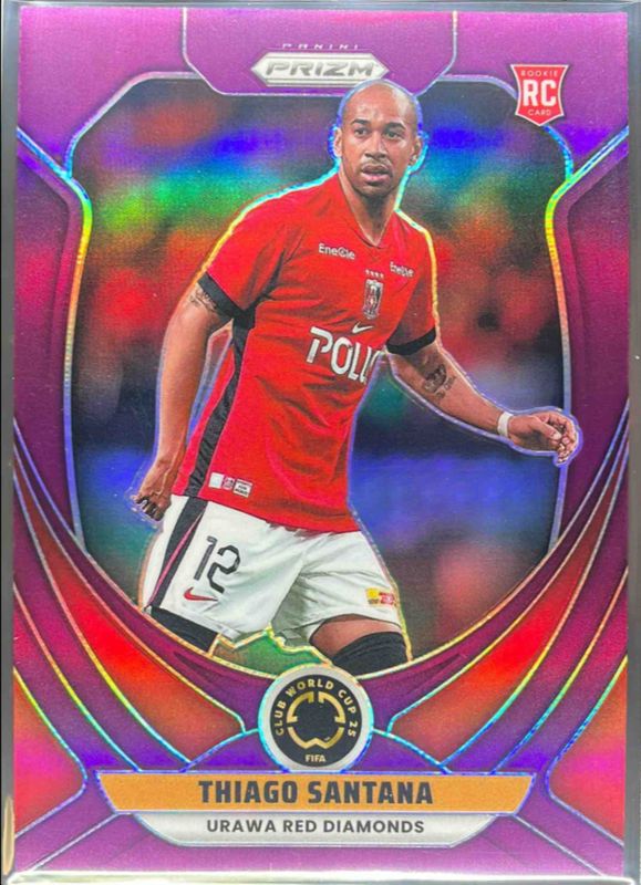 The Thiago Santana 2025 Prizm Club World Cup #74 Purple /125 card is 1 of 49 Thiago Santana's card variations in the 2025 Prizm Club World Cup set being tracked by Sports Card Investor, including Base, Green Ice, Hyper, Ice, and Pandora.