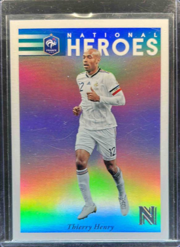 The Thierry Henry 2017 Nobility #8 National Heroes card is 1 of 35 Thierry Henry's card variations in the 2017 Nobility set being tracked by Sports Card Investor, including #18 Base, #93 Base, #93 Red /199, #18 Red /199, and #93 Blue /99.