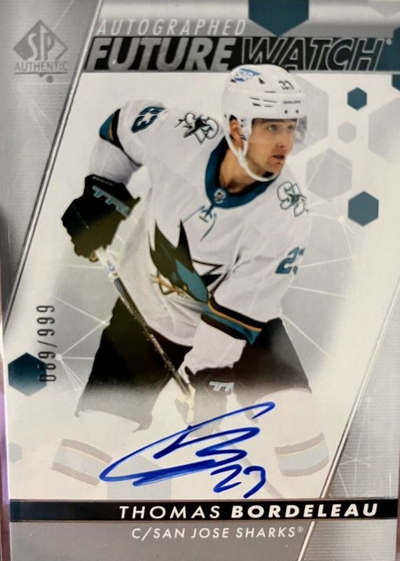 The Thomas Bordeleau 2022 SP Authentic #121 Future Watch Auto /999 Rookie card in Raw condition has not changed in price in the last 30 days and was last sold for $5.99 .