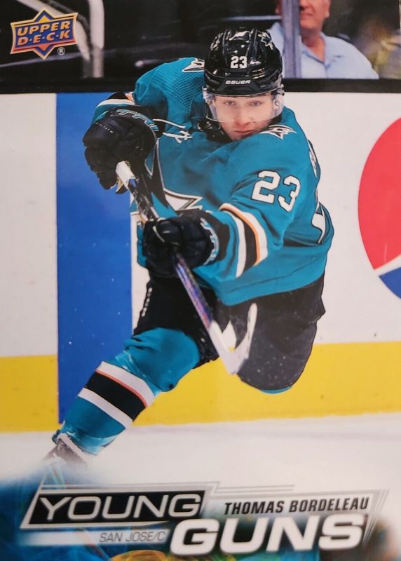 The Thomas Bordeleau 2022 Upper Deck #210 Young Guns - Jumbo Rookie card in Raw condition has not changed in price in the last 30 days and was last sold for $3.91 .
