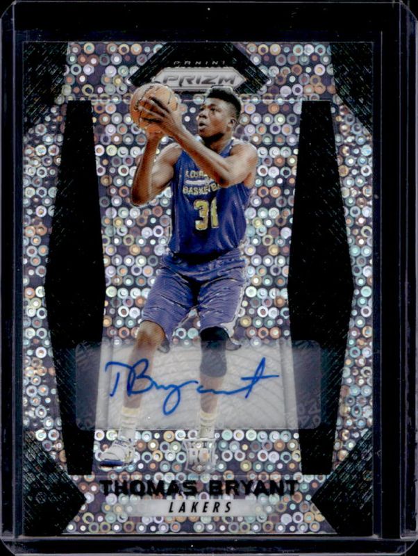 The Thomas Bryant 2017 Prizm #281 Autographs - Fast Break Rookie card is 1 of 30 Thomas Bryant's card variations in the 2017 Prizm set being tracked by Sports Card Investor, including Base, Fast Break, Green, Hyper, and Red White Blue.