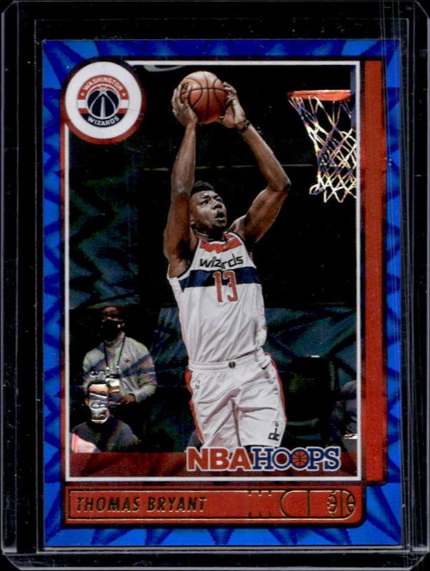 The Thomas Bryant 2021 Hoops #120 Blue Explosion /59 card is 1 of 24 Thomas Bryant's card variations in the 2021 Hoops set being tracked by Sports Card Investor, including Base, Anniversary Edition, Blue, Green Ice, and Hyper Blue.