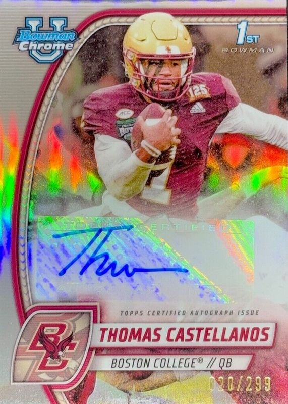 Best Prices Available For Sale of Thomas Castellanos 2024 Bowman Chrome University #PA-TCA Prospect Auto - Refractor /299 (1st)
