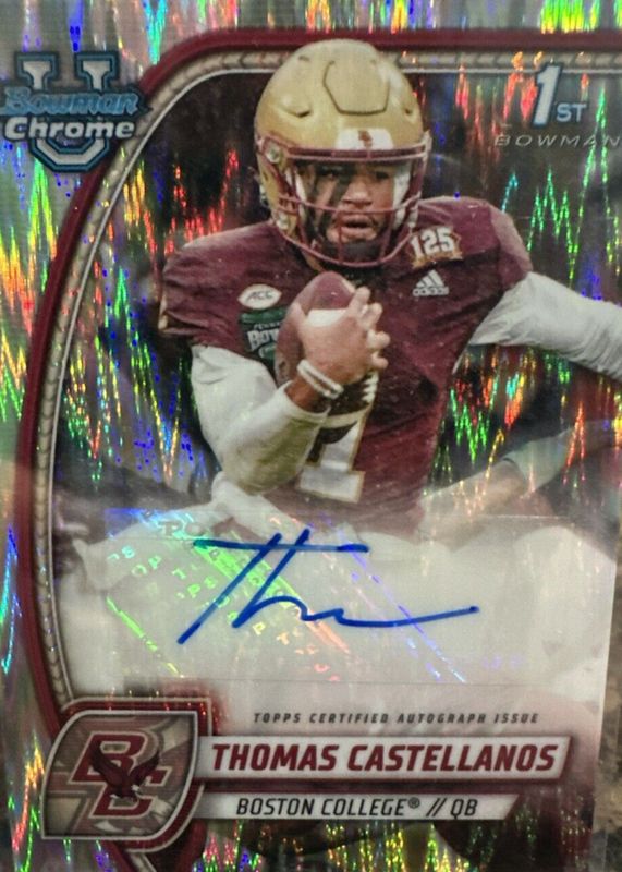 Best Prices Available For Sale of Thomas Castellanos 2024 Bowman Chrome University #PA-TCA Prospect Auto - Stealth Refractor (1st)