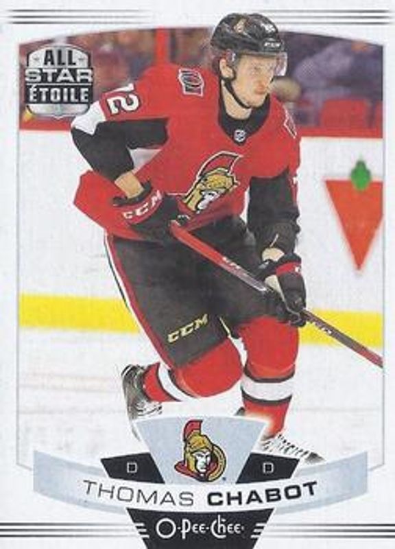 The Thomas Chabot 2019 O-Pee-Chee #290 Base card is 1 of 9 Thomas Chabot's card variations in the 2019 O-Pee-Chee set being tracked by Sports Card Investor, including Base, Blue Border, Gold Border, Red Border, and Red Border Blank Back.