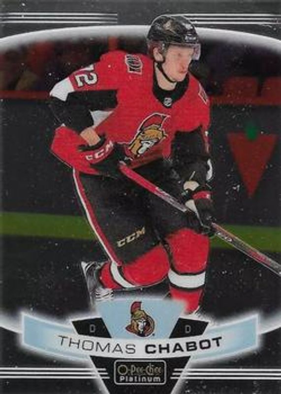 The Thomas Chabot 2019 O-Pee-Chee Platinum #142 Base card is 1 of 13 Thomas Chabot's card variations in the 2019 O-Pee-Chee Platinum set being tracked by Sports Card Investor, including Base, Matte Pink, Rainbow, Sunset, and Violet Pixels /399.