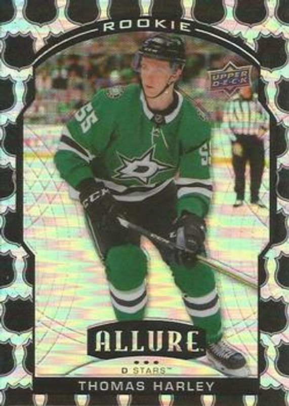 The Thomas Harley 2020 Upper Deck Allure #95 2005 Shield Rookie card is 1 of 49 Thomas Harley's card variations in the 2020 Upper Deck Allure set being tracked by Sports Card Investor, including #145 Base, #95 Base, #95 Black Rainbow, #95 Blue China, and #145 Double Rainbow.